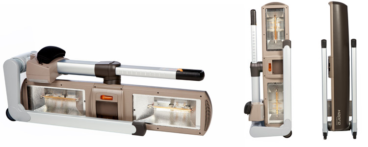| Si está buscando un solarium con el que pueda broncearse en casa y que, también, le aporte bienestar y confort, entonces el modelo Innergize de Hapro es lo que Usted necesita. Este solárium actúa sobre toda la superficie del cuerpo, y es original gracias a su sistema que combina UV/infrarrojos. | El modelo presentado es el Hapro Innergize HP 8565. |